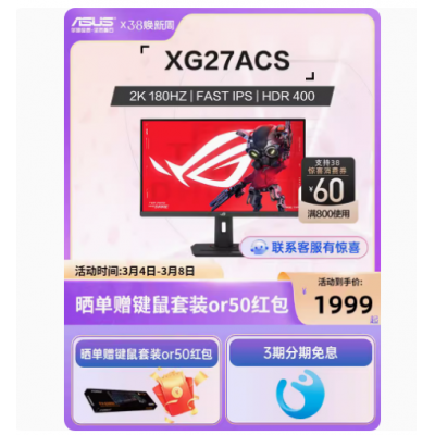 首页 > 数码 > 电子数码 > ROG XG27ACS绝杀27青春版 显示器电竞180Hz 27英寸2k显示屏幕电脑